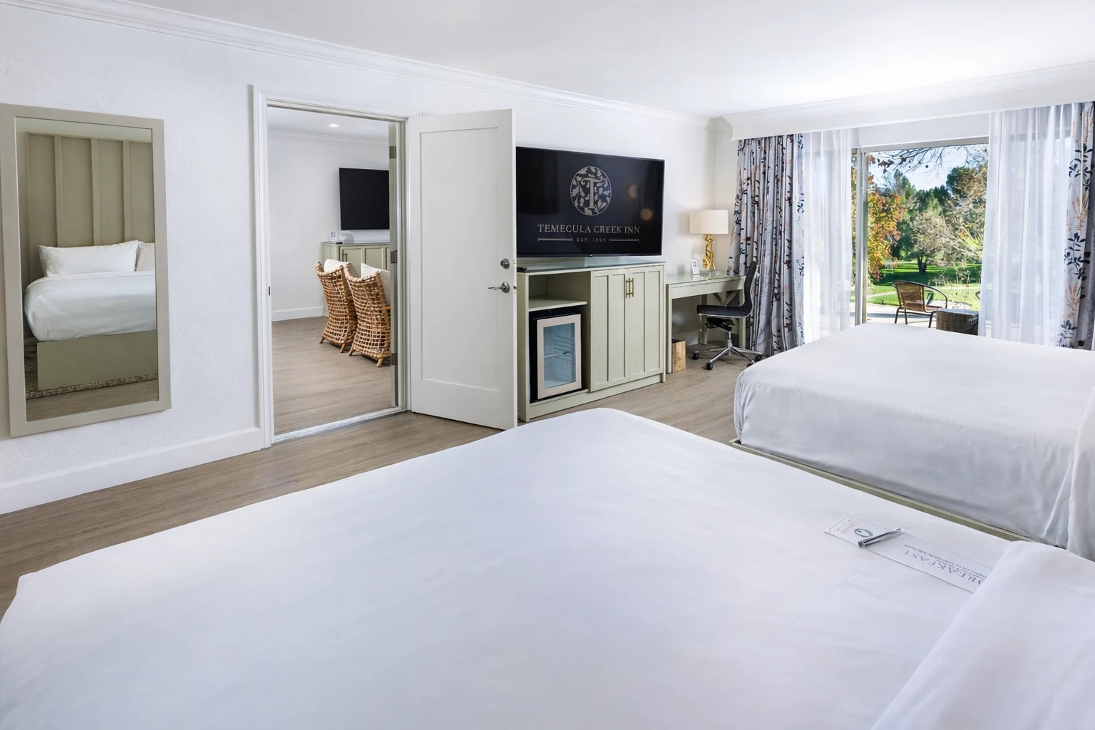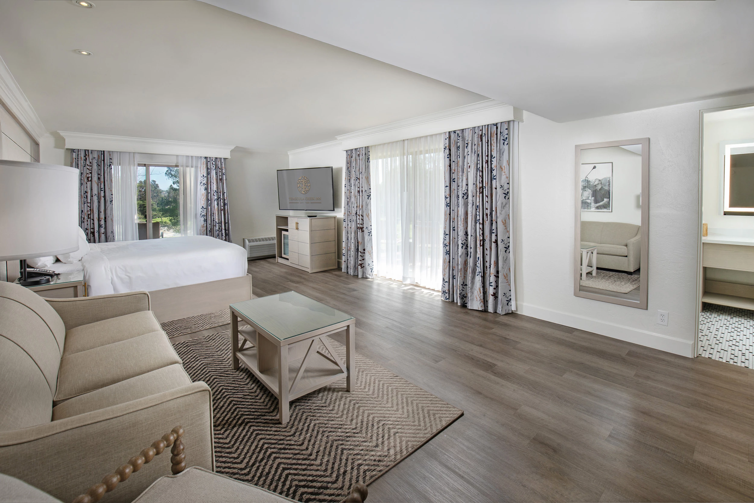 With 123 newly remodeled hotel rooms set across more than 300 acres (set for completion by Spring–Summer 2026), Temecula Creek Inn offers spacious accommodations in the heart of Temecula Valley wine country. Step onto your private patio or balcony with a Temecula Valley vintage and take in views of Temecula Creek Golf Club, then enjoy seasonal farm-to-table dining at Corkfire Kitchen just steps away.